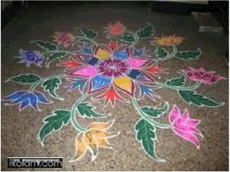 Though rarely followed in cities, most vil lages in Tamil Nadu mark the arrival of Pongal festival a month before (Margazhi – mid December to mid January) by embellishing the floor space of their dwelling entrance with decorative patterns called Kolam – drawn using rice flour and different colour powders- by female members of the family on or before dawn. Traditionally dwellings are whitewashed with in the month of Margazhi to welcome the auspicious Thai Pongal.