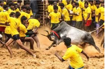 Jallikattu (Tamil: சல்லிகட்டு, callikaṭṭtu) also known Eruthazhuvuthal (Tamil: ஏறுதழுவல், ērutazhuval) or Manju viraṭṭu(Tamil: மஞ்சு விரட்டு), is a bull-vaulting sport played in Tamil Nadu as a part of Pongal celebrations on Mattu Pongal day. Bulls are bred specifically by some private rich persons of village also for the sporting event and attended mainly by many villages temple bull(kovil kaalai). Temple bull means it is like head of all cattles in the village, special poojas will be performed for this temple bull during important days.[1]